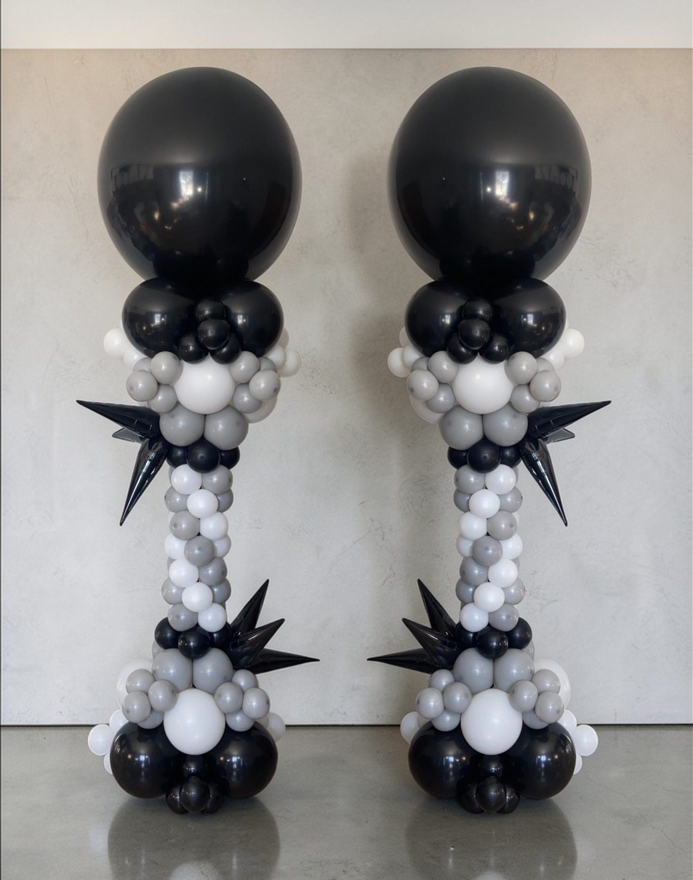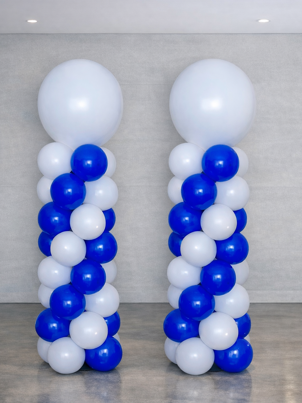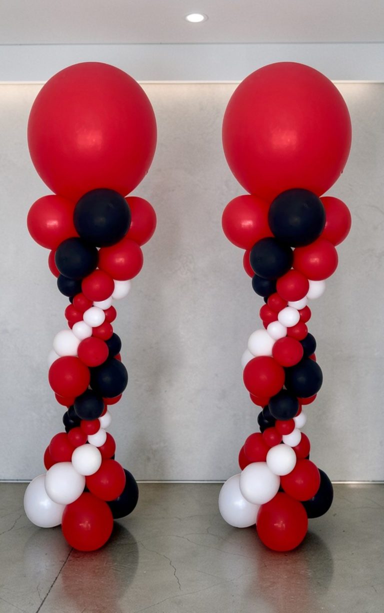 Architectural balloon columns designed to create defined entry points and visual symmetry in corporate environments.